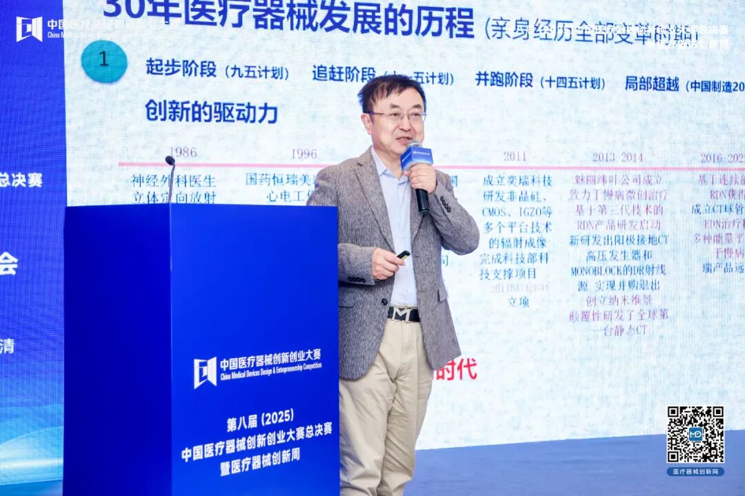上海奕瑞科技创始人、中国电子标准协会数字医疗设备与系统标准工作委员会副主任曹红光,分享了自己的实战经验。他提出,医疗器械创新网应坚守“第一性原理”,立足真实临床需求,区分跟随性与原创性项目。原创性项目虽面临研发难度大、周期长等挑战,但能掌握市场定价权、形成自主生态。